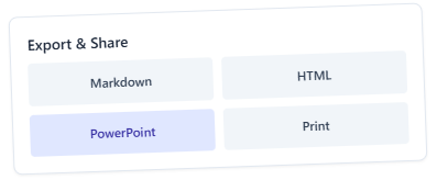 Easily export your analysis to Markdown, HTML, or even a PowerPoint-ready format. Sharing your strategic plan with your team has never been easier.