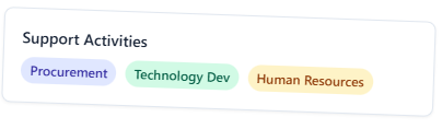 Now, detail how your support functions like HR, IT, and finance help your main activities succeed. They’re the crucial foundation holding everything up.