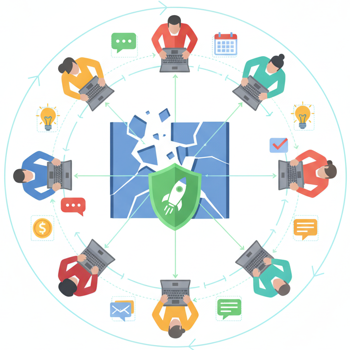 Fusion Dynamics’ new product team was a collection of individuals working in silos. Engineers, marketers, and sales staff struggled to communicate, leading to misunderstandings and missed hand-offs.