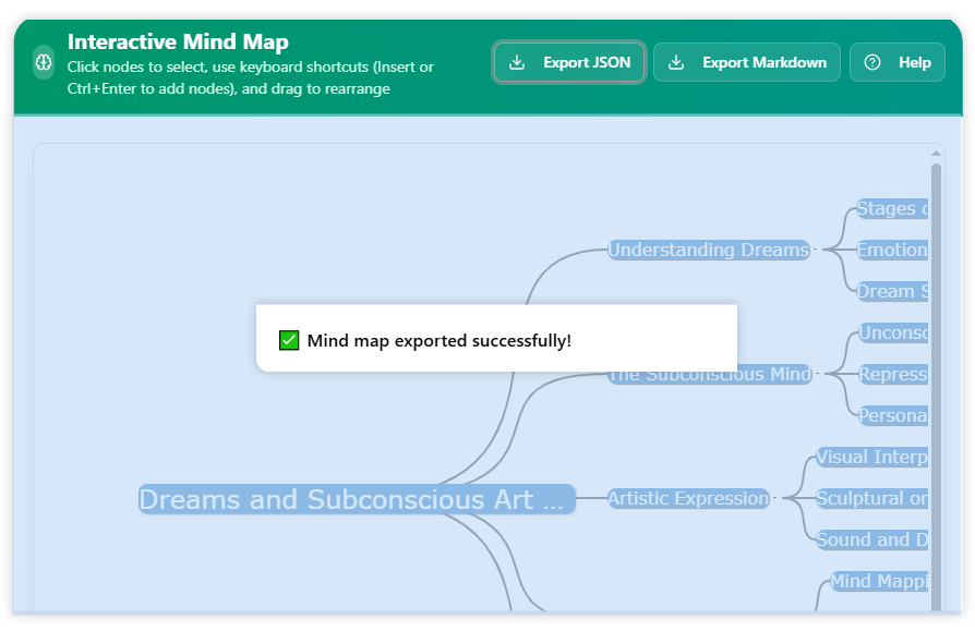 Leo begins with his core theme, ‘dreams and subconscious art project,’ letting the AI generate an initial constellation of related ideas.