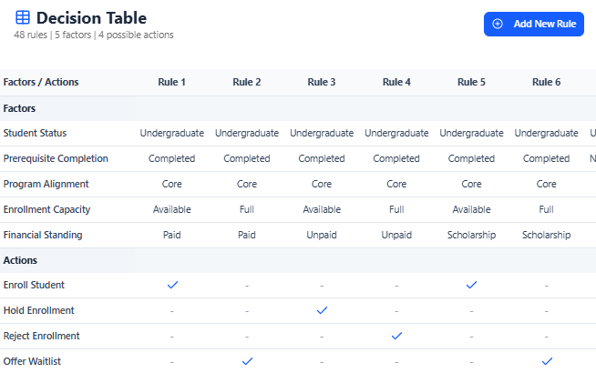 Decision tables are an excellent tool for simplifying complex logic, making them easy to create and apply. This guide outlines three straightforward steps to construct a decision table for any business process, using Course Enrollment Eligibility as an example. This approach ensures clear, consistent, and logical outcomes.