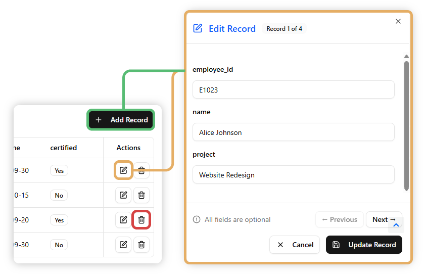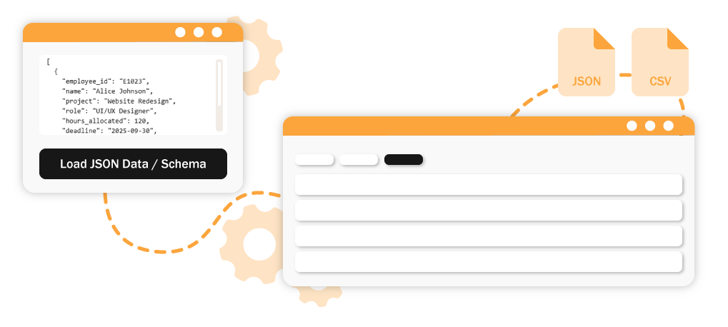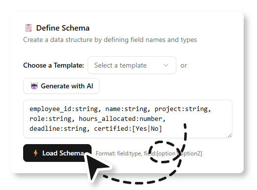 Define your table’s structure with a simple, human-readable schema. Our app intelligently recognizes data types and sets up your columns automatically.