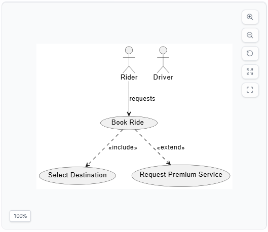(Book Ride) ..> (Request Premium Service) : <<extend>>