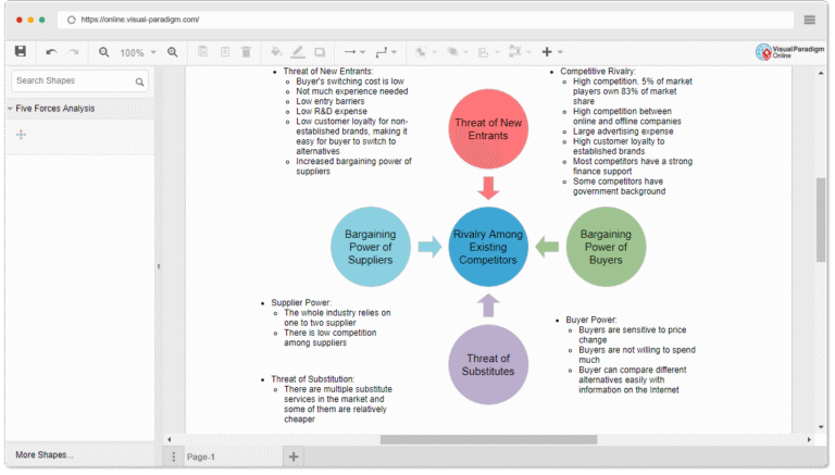 Example: A company exploring entry into renewable energy may use Five Forces to evaluate supplier dependency, buyer power, and rivalry intensity.
