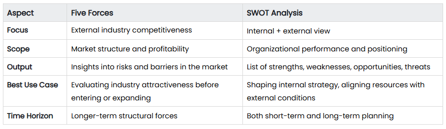 Five Forces vs. SWOT: Key Differences, Synergies, and When to Use Each