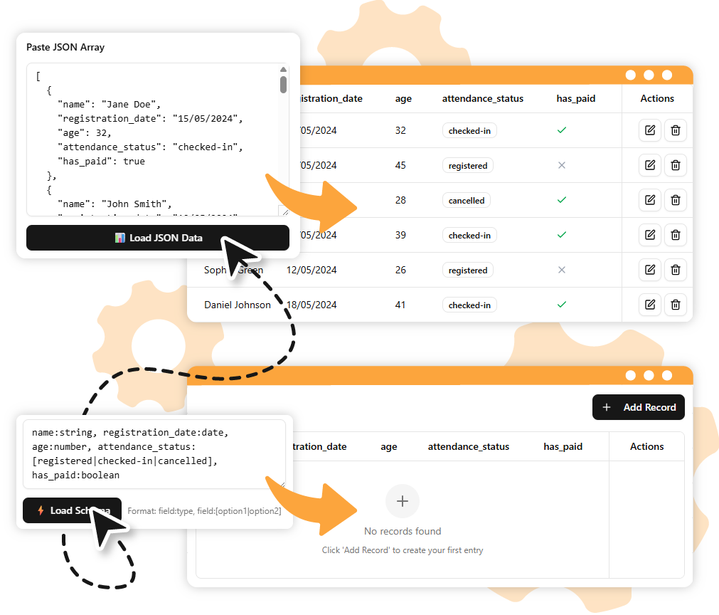 name:string, registration_date:date, age:number, attendance_status:[registered|checked-in|cancelled], has_paid:boolean