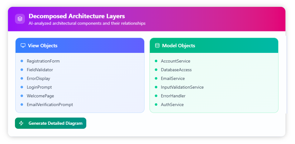The AI interprets the flow and identifies the MVC components. In this case, it may detect: