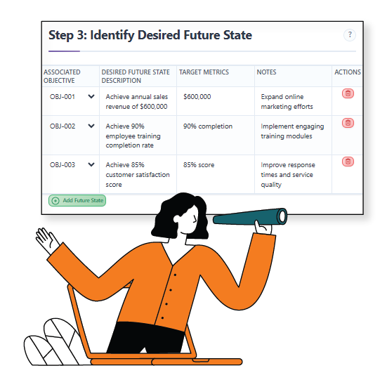 To illustrate the difference, consider an organization wanting to improve its sales. A SWOT analysis might identify a Weakness such as “inefficient marketing processes” or an Opportunity to “expand into a new digital market.” These are important insights, but they don’t provide a clear, step-by-step solution.