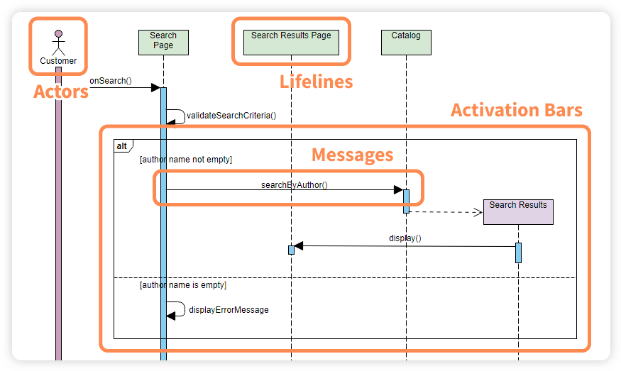 Rectangles placed on lifelines, representing the time an object is actively performing an operation.