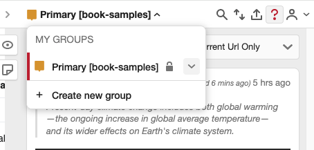 Choose Your Group: At the top of the Annotator sidebar, click the Groups menu to pick the specific group you are working with.