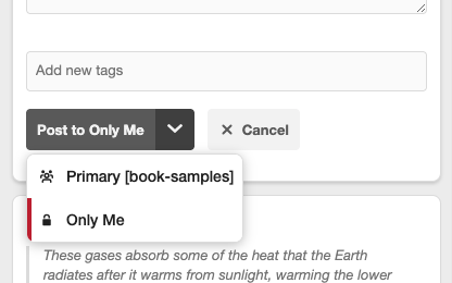 When you’re working on a reading, you might not be ready to share your thoughts with the whole class or team right away. Annotator lets you save “drafts” that only you can see. You can perfect them later before making them public to the group.