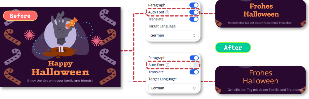 Text translation isn’t just about converting words—it’s also about maintaining the visual integrity of the original content. With the Auto Recognize Font feature, our AI Image Translator can automatically detect the font family used in the source image and apply a similar or matching font to the translated text. This helps preserve the original design’s style and aesthetics, making your translated images look more consistent and professional.