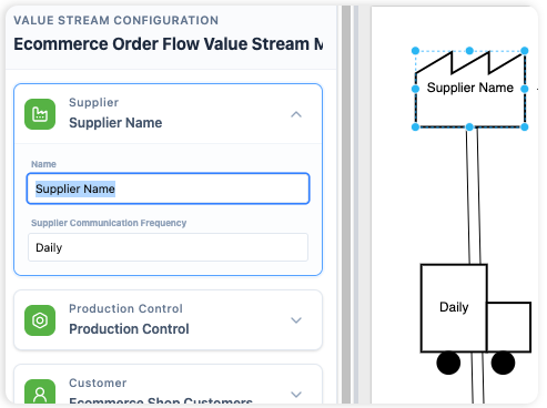 Watch your diagram update instantly as you modify process steps or inventory levels.