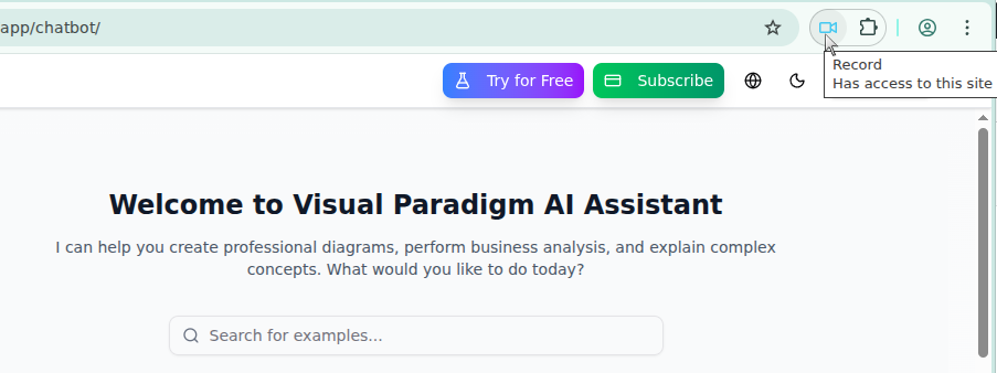 - Click the extension icon in your browser toolbar to open the recorder.