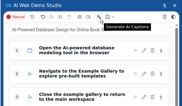 Our AI assistant can automatically generate a title for your demo and create clear, human-readable captions for each step you performed.