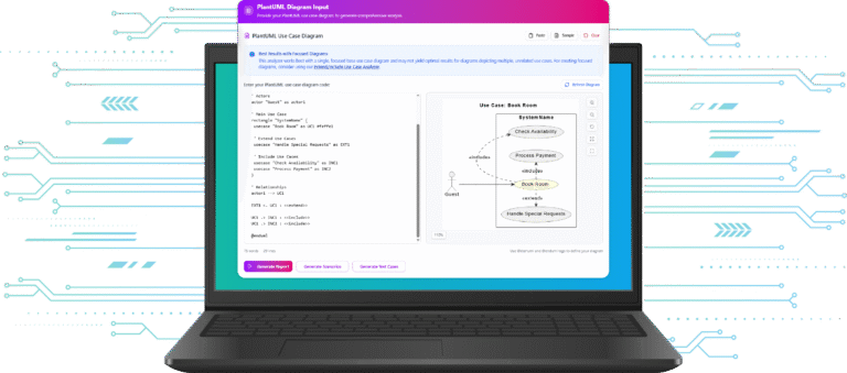 Generate a detailed use case report including actors, flows, pre/post-conditions, and sub-use cases with a single click.
