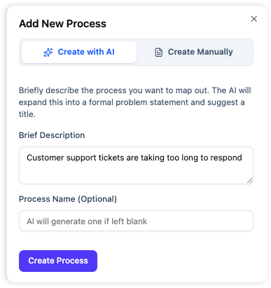 Turn a paragraph into a structured project with key processes identified in seconds.