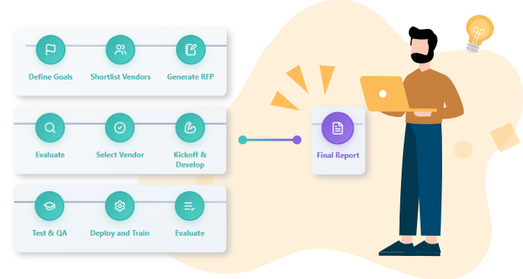 It breaks down the complex process—from initial planning to post-deployment support—into manageable stages, giving you a centralized workspace to define requirements, evaluate vendors, track progress, and generate final reports.