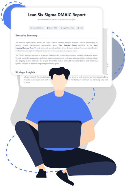Generate comprehensive project reports instantly. Export your entire DMAIC project to Markdown, HTML, or PowerPoint with a single click.