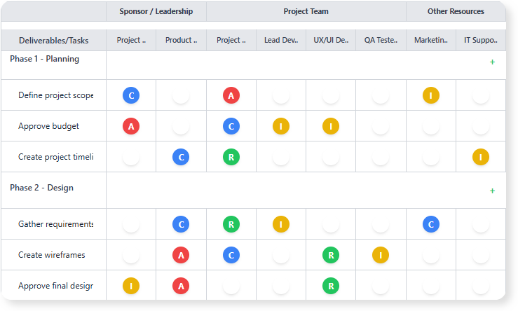 Yes, it’s common for a team of people to be jointly responsible for completing a task. However, if you find too many ‘R’s for a single task, it might be a sign that the task is too broad and should be broken down into smaller, more specific sub-tasks.