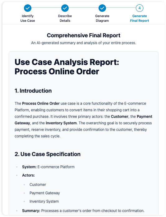 Receive a comprehensive, well-structured report summarizing the entire use case.